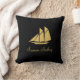 Voilier doré en été sur oreiller jeté noir.