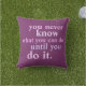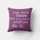 "Vous ne savez jamais ce que vous pouvez faire avant de le faire." Citation inspirante sur un coussin violet moelleux ! Des citations stimulantes et motivantes pour les femmes, pour la confiance en soi et le succès, des lettres audacieuses dans les tons pastel de rose et de violet, des mots de taille variable pour pizzazz supplémentaire.