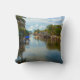 Détendez-vous avec la vue calme et paisible sur ce coussin. Cette photographie originale de ZoeSPEAK est une vue lointaine d'un canal à Estero Island, en Floride. À l'extrémité de la voie navigable, près de l'horizon, se trouve le pont vers le continent. Le ciel bleu est rempli de nuages blancs et gonflés, des arbres tropicaux et des bateaux bordent le canal, et le reflet de la scène magnifique complète ce tableau de la vie côtière.
