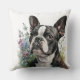 COUSSIN WATERCOLOR BOSTON TERRIER CHIEN AVEC FLEURS