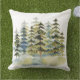 Coussin Watercolor Foggy Green Pine Forest