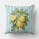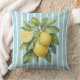 Coussin Watercolor Lemons on Blue Striped Background