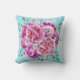 Coussin Watercolor Lush Pink Peonies & Green Teal Leaves