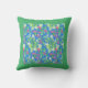 Un très joli Coussin ou Cushion avec un motif d'orange Faux blanc crémeux et rose vif Weigelia avec une large et douce bordure verte, d'une aquarelle peinte à la main par Judy Adamson.