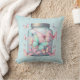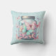 A pillow with a magical image featuring pastel colored butterflies in a jar.
