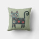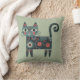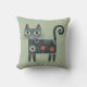 Coussin Whimsical Folk Art Retro Boho Chat Sage