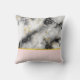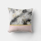 Une coussin avec une motif marbrée élégante et moderne. Marbre blanc, noir et gris fumé avec de minces rubans de tourbillons en faux or dans tout le motif. Un dégradé rose clair arrière - plan sous la motif en marbre.