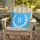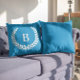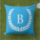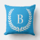 Modifiez le joli bleu bleu bleu uni couleur arrière - plan sur ce modèle de monographie de couronne de laurier blanc pour créer votre propre oreiller de lancer. Police de style monogramme moderne. Vous pouvez modifier cette police.