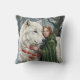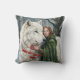 Coussin White Wolf Redhead Druid Winter Berries Fantasy Ar
