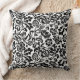 Jetez l'oreiller dans un motif vintage William Morris à damas floral, numériquement rehaussé et coloré, en noir sur un arrière - plan blanc