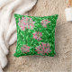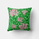 Jetez l'oreiller dans un William Morris Art Nouveau motif de fleurs de miel suckle contre un arrière - plan de vignes et de feuilles - fleurs dans les tons rose glace, avec feuilles vert émeraude, contre un arrière - plan vert pastel
