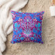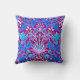 Lancer l'oreiller dans un vintage William Morris motif de jacinthes, tulipes et feuilles, dans les tons bleu aqua et cobalt, accentué de fuchsia et rose pâle, sur un profond améthyste violet arrière - plan