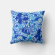 Jetez l'oreiller dans un vintage imprimé floral William Morris de lys stylisés et d'Irises, numériquement rehaussés et colorés, dans les tons bleu cobalt profond, bleu cérulean, et bleu ciel clair sur un arrière - plan blanc