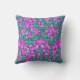 Coussin dans un William Morris, Art Nouveau, imprimé textile d'iris et de feuilles, numériquement rehaussé et coloré, dans une orchidée douce et turquoise, sur un profond améthyste violet arrière - plan