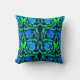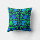 Jetez l'oreiller dans un motif textile vintage de William Morris avec des fleurs et des feuilles en pétanque stylisés - des fleurs dans un dégradé profond à clair de bleu cérusé, avec des feuilles vert citron, sur un arrière - plan bleu cobalt foncé