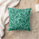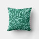 Coussin jeté dans un motif damassé vintage de William Morris représentant des fleurs et des feuilles de chardon, en bleu turquoise / paon, sur un fond aqua clair, rehaussé et coloré numériquement