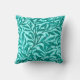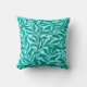 Lancer l'oreiller dans un vintage William Morris motif de branches de saule stylisées, en turquoise / paon et turquoise foncé, sur un arrière - plan aqua clair