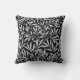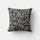 Lancer l'oreiller dans un motif en textile William Morris Art Nouveau de branches stylisées de saules et de feuilles dans des tons gris/gris argenté et blanc, sur un arrière - plan noir