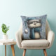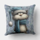Coussin Winter Blue Christmas Cat With Hat And Scarf