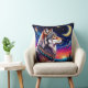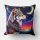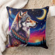 Coussin Wolf Under the Crescent Moon at Night