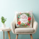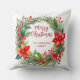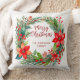 Ce coussin de vacances simple et élégant dispose d'une superbe couronne d'aquarelle avec des feuilles verts et des baies rouges sèches, et d'une typographie de script rouge moderne qui dit "Joyeux Noël" sur un arrière - plan blanc.
