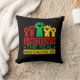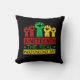 Justice sociale et histoire noire mot art jeter oreiller caractéristiques poings élevés avec "Junetten - le Jour de l'Indépendance Réel" texte en Pan Afrique couleurs combo sur arrière - plan noir