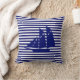 Elégant yacht bleu moderne sur bleu blanc rayé Jeu d'oreiller.