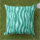 Une mise à jour sur un coussin extérieur poster de animal classique - rayures zébrées en turquoise / paon avec un arrière - plan aqua clair
