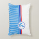 Ancrage à rayures nautiques bleu, rouge et blanc coussin / coussin. Idéal pour ajouter une touche nautique à une chambre des marins ou un salon côtier. Uniquement conçu par Sarah Trett.