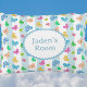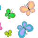 Fun multicolor folk art style butterflies flutter over this sweet blue and white stripe background. Personalize name or message!