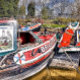 Un design artistique de vieux bateaux à étroit amarrés sur le canal en attente de restauration.