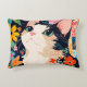 Un imprimé d'art animé avec un chat curieux entouré de fleurs audacieuses et colorées et un arrière - plan d'inspiration patchwork. Les motifs floraux complexes ajoutent charme et fantaisie au design. Parfait pour les amoureux de les chats et les amateurs de déco ludique et d'inspiration nature !