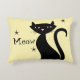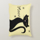 Coussin avec un chat noir des années 1950 avec des étoiles noires avec un arrière - plan jaune.