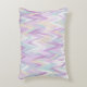 Un chevron abstrait dans une palette violette, turquoise, ivoire et blanche.
