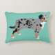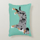 Cet oreiller de lancer présente une illustration réaliste d'un chien chiot australien Shepherd contre un arrière - plan vert menthe. L'envers a un motif de coordination des Australiens.