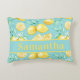 Coussin Accent avec motif citron jaune mignon sur bleu clair, et espace pour ajouter un nom sur les deux côtés