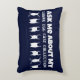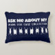 Un coussin impressionnant imprimé avec Ask Me About My Shark Egg Coque Collection, et une rangée de coques d'oeufs de requin mignons. Un requin blanc sur un arrière - plan bleu marine.