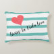 Coussin amusant avec "Livin' La Vida Loca" en écriture de script. rayures turquoises, décorées d'un corail, coeur de parties scintillant.