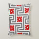 Clé grecque Art Déco ou labyrinthe motif accent coussin en gris graphite foncé / gris et blanc, accentué avec le rouge chinois profond