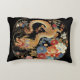 L'oreiller à jetons présente des dragons de style asiatique entourés de fleurs sur un arrière - plan noir. Le design a été créé avec l'aide de l'IA.