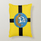 Coussin avec un design avec le drapeau de Wellington City, Nouvelle-Zélande. Un drapeau jaune avec une croix noire et le sceau de la ville avec l'image d'un navire au centre