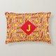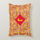 Le coussin de l'enfant imprimé à l'avant et au dos avec un motif de hot dogs et de bouteilles de moutarde savoureux, sur des rayures rouges et blanches. Il y a une zone de diamant monogramme sur le devant pour vous d'ajouter votre propre initiale
