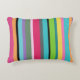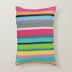 Des rayures vives dans les tons rose, rouge, jaune, vert, violet, noir, orange, turquoise, et d'autres ornent ce coussin d'accent.