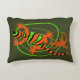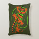 Coussin coloré de lézard exotique. Lézard rayé vert vif et orange, imprimé graphique moderne, sur un arrière - plan vert chaleureux.