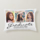 Cet oreiller photo collage personnalisé fait un cadeau unique pour les diplômés. Le design comprend trois photos à l'avant côte à côte avec une école de nom et année en dessous dans la typographie de script moderne. Le dos du coussin a trois photos de plus pour vous de customiser à vous. Utilisez les mêmes photos ou changez pour utiliser plus pour une variété. Conçu par l'artiste Susan Coffey.