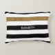 Personnalisez ce coussin d'accent motif large et large, moderne, avec une bande brillante en or, comme une parties scintillant, en ajoutant le nom de toute fille. Ce motif à rayures graphiques tendance est parfait pour le fashionista chic. Image imprimée plate, PAS de parties scintillant réelle.
