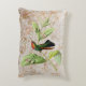 Accentuez le coussin avec une illustration vintage du colibri Throated ardent. Un colibri vert et bleu coloré avec une gorge rouge-orange lumineuse est perché sur un arbuste d'oléandre de Nerium avec les fleurs roses, sur un arrière - plan grunge vintage blanc cassé avec des remous d'or et des silhouettes florales.