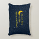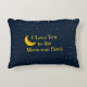 "I Love You to the Moon and Back" ciel étoilé avec un homme jaune sur la lune, coussin d'accent.