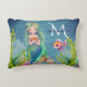 Coussin de sirène nominative avec monogramme mignon. Design de sirène mignon sous la mer. Parfait pour une chambre au thème nautique et océanique.