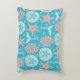 Thème de plage tropical Le coussin de Noël propose des coquillages fantaisistes "Happy Holidays", typographie de la queue de baleine et des vagues de l'océan avec un motif nautique à l'envers en blanc, turquoise et corail. Parfait pour les thèmes côtiers et les lieux. Oeuvre originale KL Stock.
